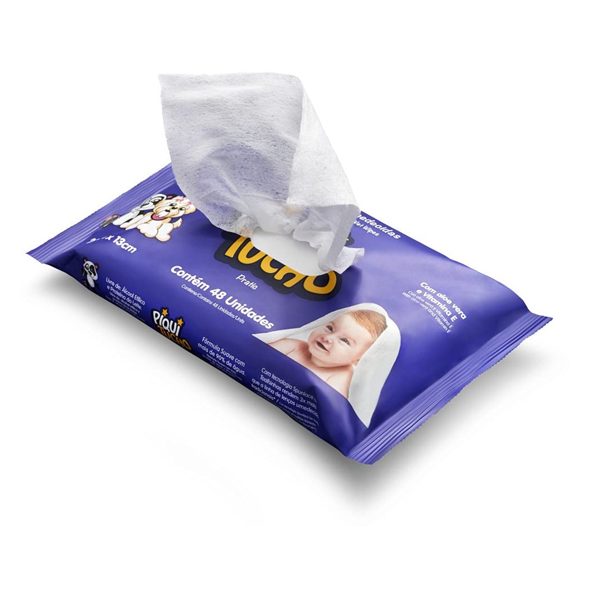 As toalhinhas umedecidas bebê piquitucho premium contém uma fórmula suave com mais de 95% de água e com ingredientes suaves, glicerídeos da manteiga de karité e vitamina E.